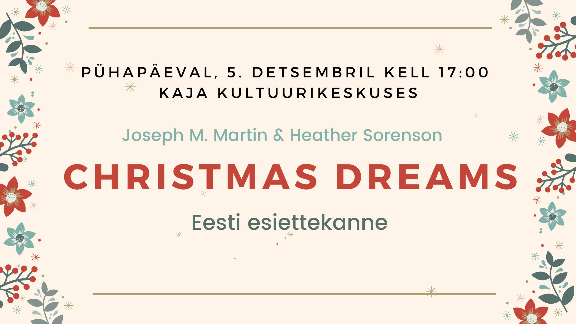 Ettekandele tuleb Joseph M. Martini ja Heather Sorensoni teos "Christmas Dreams" (Eesti esiettekanne).